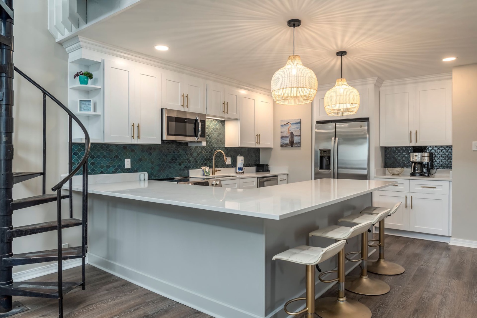 Casa Coquina 2026 kitchen remodel is complete! Fantastic upgrade - check it out! Casa Coquina is located on the Island’s narrow west end, sitting in-between the Gulf and Bay shorelines, a perfect spot for wonderful water views and easy access to the Gulf beach at a great price! Relax on the large, covered deck facing the gulf with outdoor dining set. Soak up some sun on the large open deck along the western side of the home with views of both Gulf and Bay. Living area with cathedral ceiling, separate dining area, kitchen with ample dining space and Northwest master bedroom with 1 king sized bed. The southwest bedroom has 1 double bed, the southeast bedroom has 1 queen bed, the north bedroom has 1 full/twin bunk and the loft bedroom which is accessed by a spiral staircase has 2 twin sized beds. Amenities include large open and covered decks, phone, 5 TV's, DVD, washer/dryer. The kitchen includes all dishware, utensils, glassware, pots/pans, ice maker, microwave, dishwasher, automatic drip coffee maker and toaster. Linens are provided. Enjoy easy access to the Gulf Beach. If you have additional questions about this Dauphin Island vacation rental property, please call us toll free at 877-861-3992.
